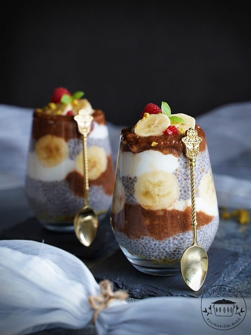 Recept za tale nadvse okusen zajtrk že dolgo počiva v moji knjižici receptov. Že leta nazaj sem se kratkočasila s Pinterestom in videla objavo za recept, kjer so v kozarčku bile naložene različne plasti – jogurt, chia, sveže sadje, kosmiči, kaše ipd. Nad prelepimi fotografijami sem bila tako navdušena, da so še po dolgih letih stalnica v naši kuhinji. Ne le, da dobro izgledajo, so tudi nasitni in božanskega okusa. Še en velik plus pa je, da si ga lahko pripravite vnaprej in ga zjutraj, ko se vam kam mudi, samo vzamete s sabo.