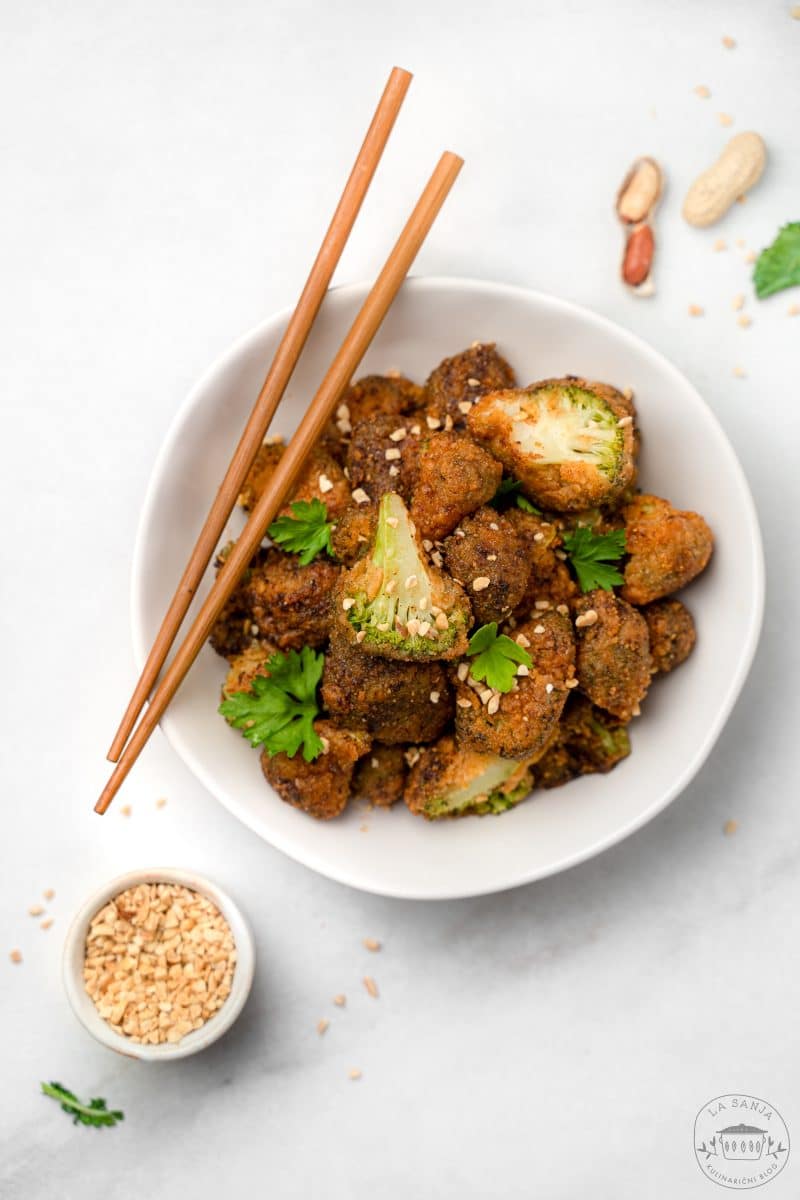 Doma ga skoraj nikoli ne jemo, če pa že, pa zelo redko. Tile hrustljavi in božanski brokolijevi ocvrtki so bili tako dobri, da sem jih morala hitro pripraviti že drugo rundo. Sočni s hrustljavo skorjico in, zahvaljujoč Rok’s ekipi, tako dobro arašidovo aromo, da kar ne moreš prenehati jesti. 🙂