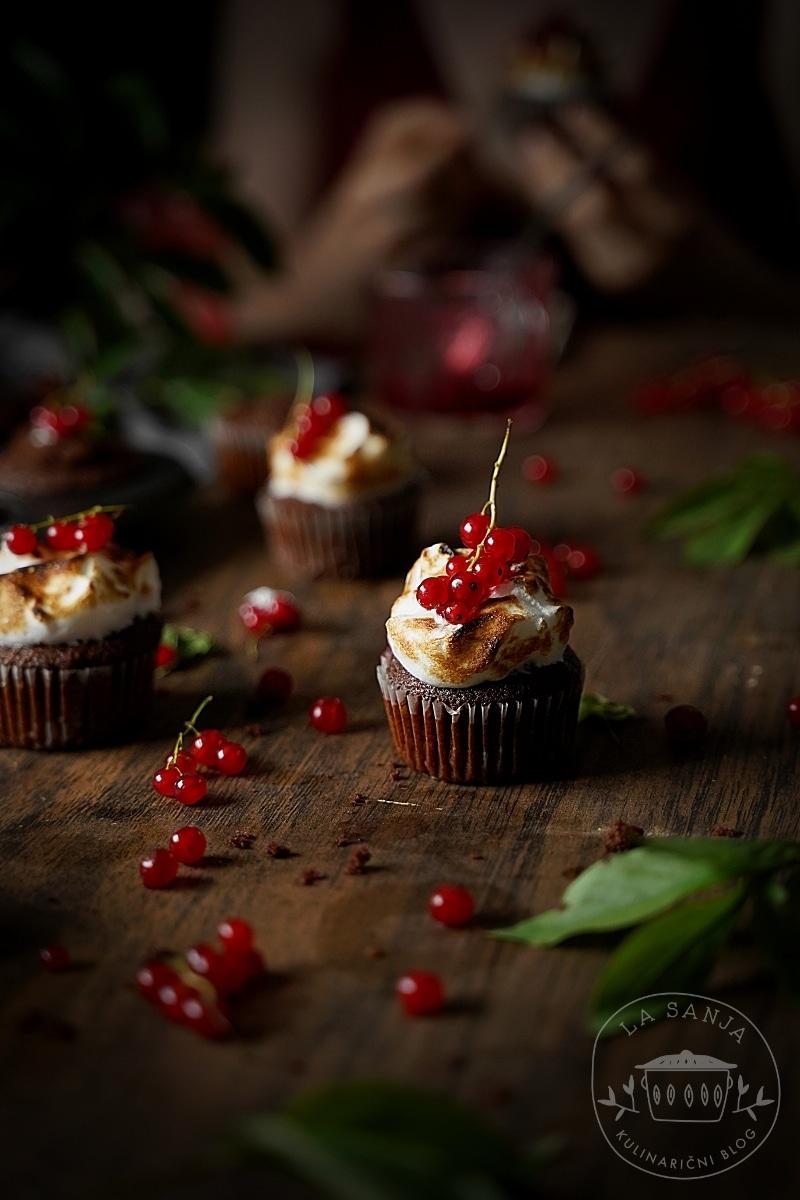 Čokoladni muffini z ribezovim polnilom in meringue-om