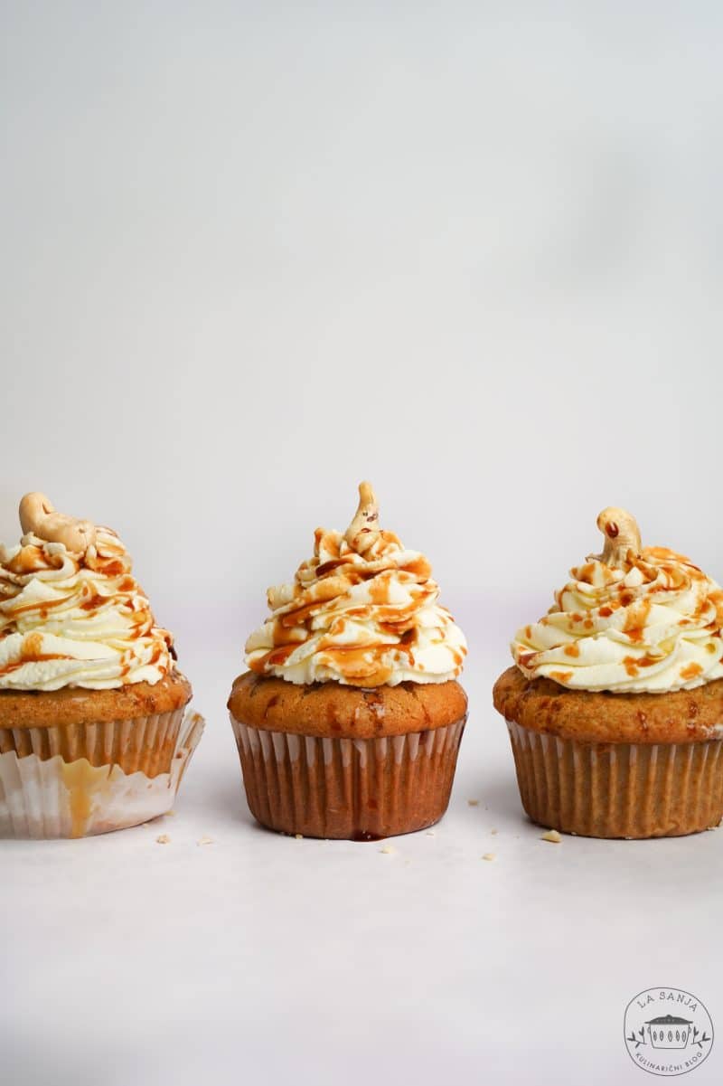 Tile današnji so nadgrajena različica muffinov. Gre za muffin biskvitno osnovo, okrašeno z mascarpone frostingom in karamelo. Da pa to ne bi bili zgolj navadni muffini, na sredi skrivajo prav posebno sestavino – domačo karamelo, ki steče ob ugrizu.