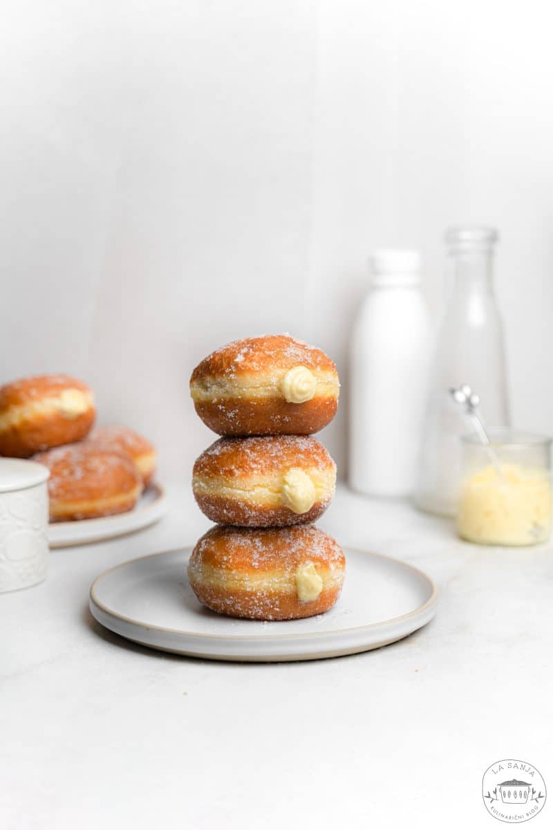 [recipe title=”Krofi z vaniljevo kremo” servings=”ca. 13 krofov” time=”3-4 h brez ohlajanja” difficulty=”/”]