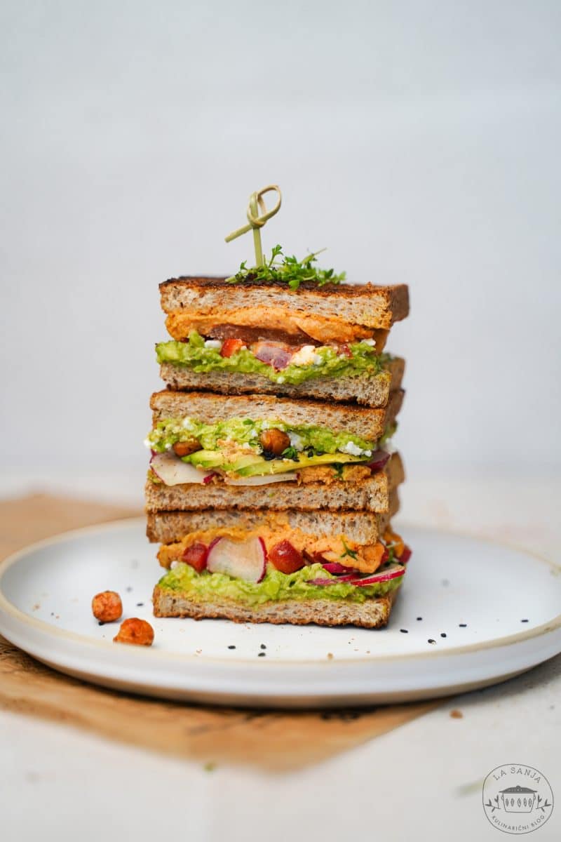 Poleg zdravega čičerikinega namaza, ki ga lahko, mimogrede, pripravite tudi z belim fižolom, pa tale barviti zajtrk vsebuje tudi drugi del namaza, avokadov namaz, ki je sestavljen zgolj iz začimb, limoninega soka in, kdo bi vedel, avokada. 😊