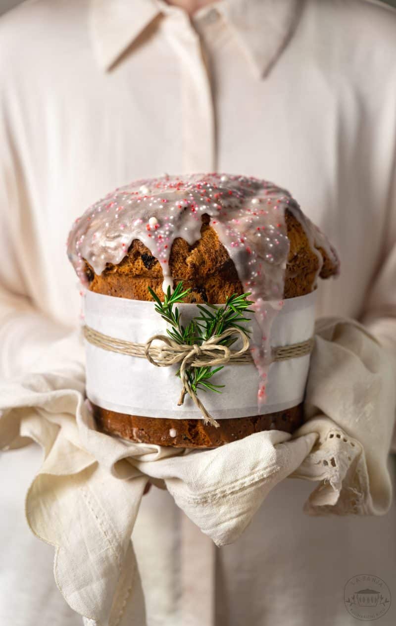 [recipe title=”Rusi kulich” servings=”8-10″ time=”45 min brez vzhajanja in peke” difficulty=”pekač za panettone, Ø 20 cm, višina 15 cm”]