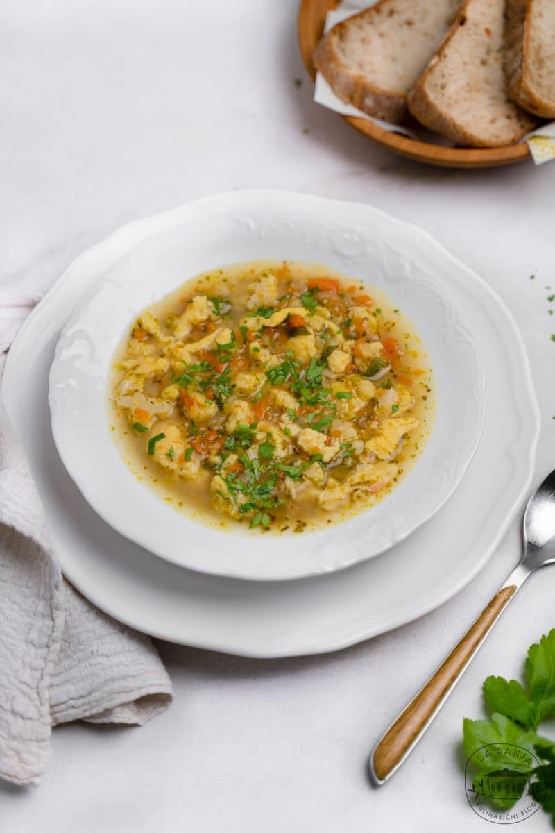 Med takšnimi juhami imam najraje zelenjavno z vlivanci, ki jo postrežem kar namesto kosila. Pri nas je juha včasih kar glavna jed, ne potrebujemo ničesar drugega. Sveža zelenjava, malce začimb in zakuha iz vlivancev je tisto, zaradi česar se često vračam k njej, ne glede na to, v katerem letnem času smo.